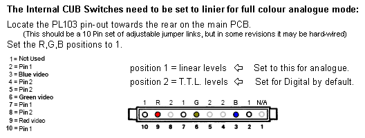 this was a good option.However, for more widespread use the analogue mode is the one you want. And probably the most asked question about the Cub is ‘How do I convert the to Microvitec CUB monitor to analogue mode?’